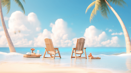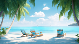 > 缤纷夏日海边沙滩休闲度假风景图片