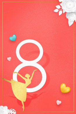 三八妇女节女人剪影立体剪纸花朵剪纸风背景