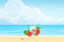 夏至西瓜冷饮清凉节气插画