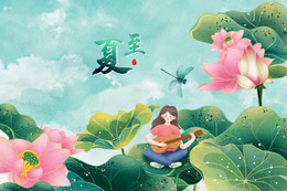 > 夏至创意荷花金鱼节气插画背景