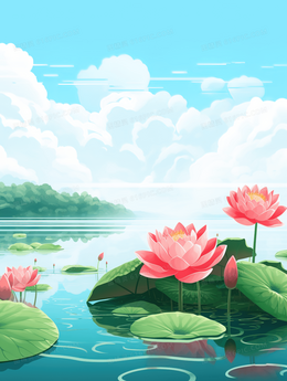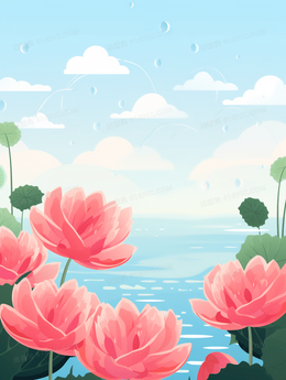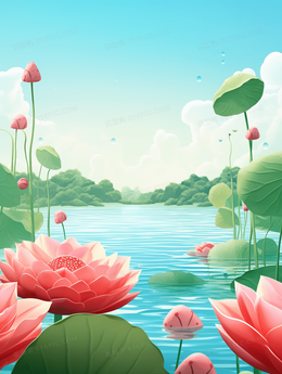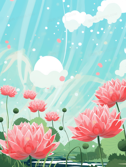 粉色唯美荷花夏至节气插画