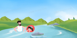 手绘卡通户外游泳健身背景