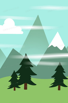 > 蓝色绿色草地白云天空卡通插画背景素材