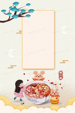 传统节日腊八节手绘卡通中国风腊八粥背景