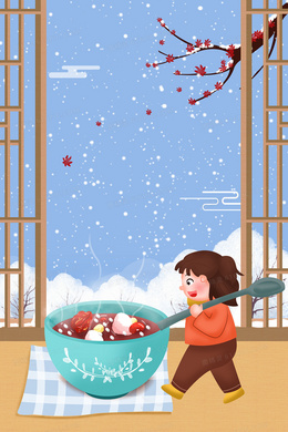 腊八节手绘卡通腊八粥冬季传统节日背景