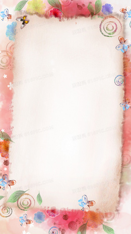 浪漫花纹涂鸦相框蝴蝶H5背景素材