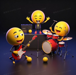 3D3个emoji表情在一起组成一个乐队