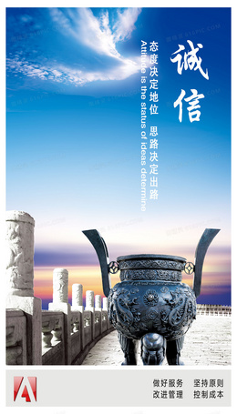 诚信企业文化展板鼎炉 蓝天白云 教师展板