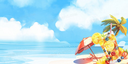 夏季沙滩椰树清凉冷饮背景