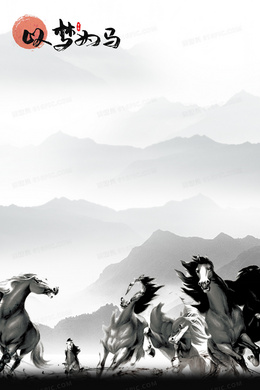 水墨中国风企业文化以梦为马励志正能量背景