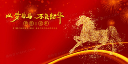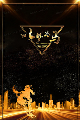 以梦为马红金骏马商务正能量背景