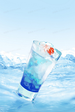 夏季蓝色冰爽海岸大海冷饮背景