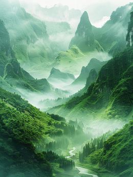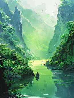 当前位置: 图精灵 > 背景图库 > 插画 > 绿色唯美大自然山水风景插画