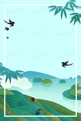 谷雨传统节气插秧创意合成背景