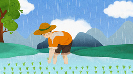 谷雨节气手绘插秧背景