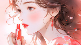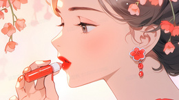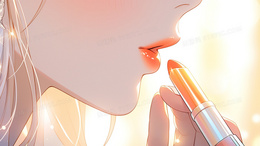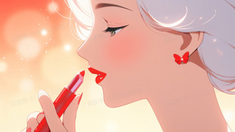 > 一个拿着唇膏上口红的女生插画
