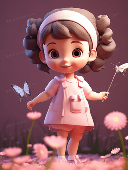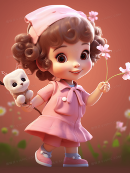 穿粉色晚礼服的美女插画