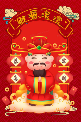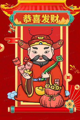 当前位置: 图精灵 > 背景图库 > 插画 > 新年喜庆财神爷发财2024龙年插画