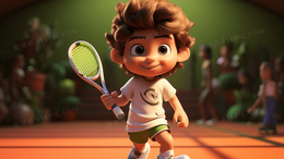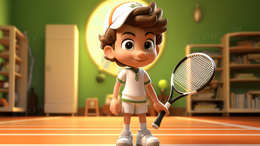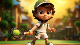 > 拿着网球拍打球的小男孩插画
