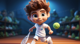 拿着网球拍打球的小男孩插画