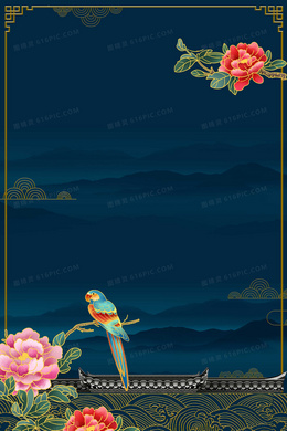 中国风新中式鎏金古风复古国潮仙鹤祥云背景