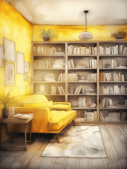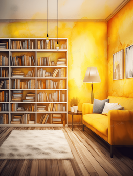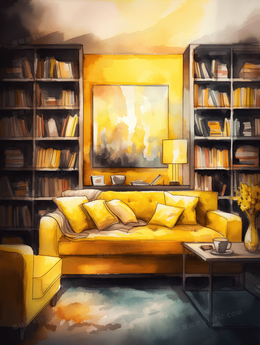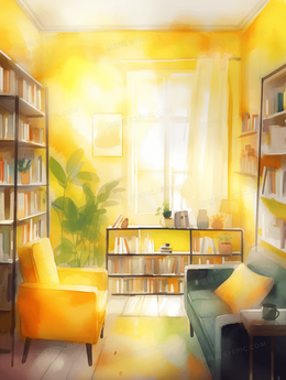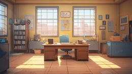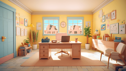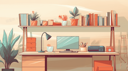 书房书桌上摆放整洁的电脑书本简约商务插画