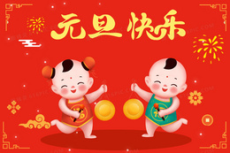 2024元旦快乐时钟插画