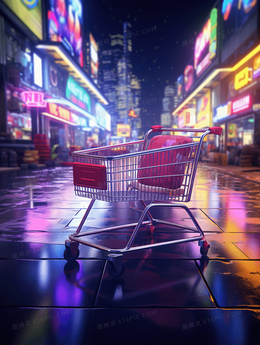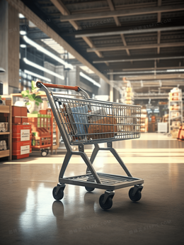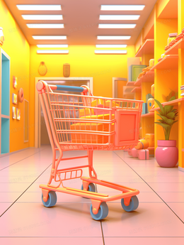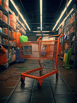 超市购物车场景插画