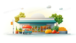 超市杂货店门面插画