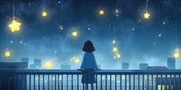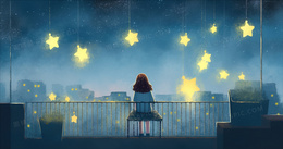 美丽的星空下小女孩在思念创意插画