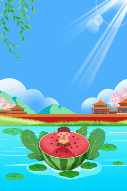 绿色西瓜边框夏季背景