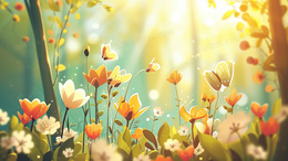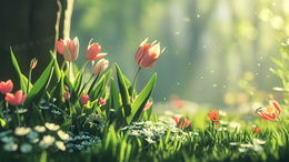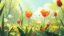 > 春日鲜花盛开的森林花草地插画