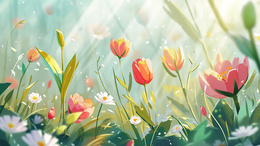 春日鲜花盛开的草丛插画