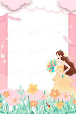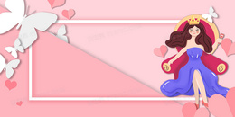 卡通可爱女孩创意女生节文艺妇女节女神节粉色背景