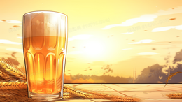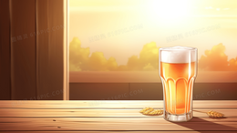 户外一杯清爽的啤酒插画
