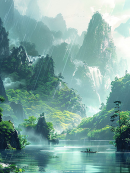 当前位置: 图精灵 > 背景图库 > 插画 > 绿色唯美大自然山水风景插画