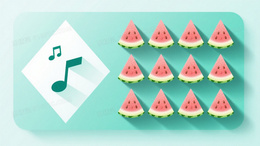 扁平化插画设计几何切割的西瓜三角片在薄荷绿背景上有序排列