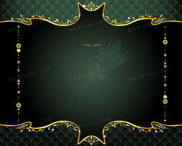 矢量绿色欧式花纹金色边框背景
