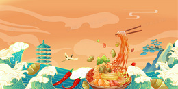 > 国潮风小吃米线背景