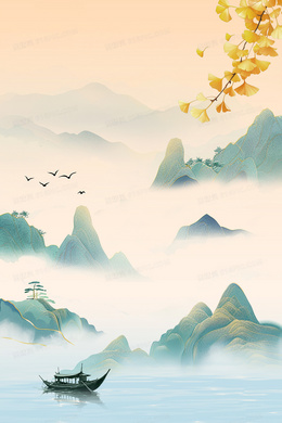 国潮风古建筑山水合成背景