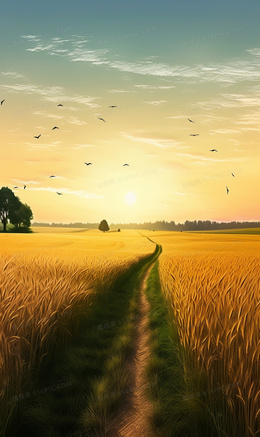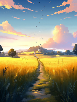 当前位置: 图精灵 > 背景图库 > 插画 > 唯美的金色麦田小路