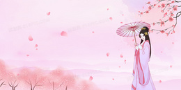 唯美手绘粉色国风美女三月三背景