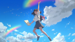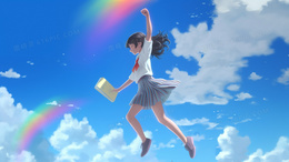 > 女孩拿到录取通知书开心的跳跃在空中创意插画