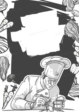 黑白简约厨师与美食背景素材