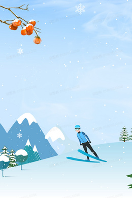 手绘卡通极限运动室外滑雪背景