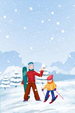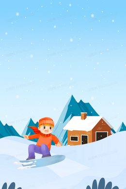 手绘卡通滑雪极限运动背景