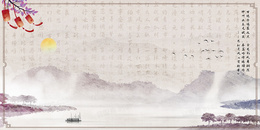 创意大气水墨中国风复古手绘山水春节诗句背景