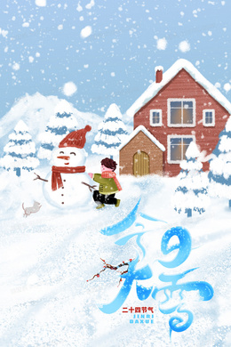 手绘雪景大雪节气背景图