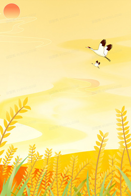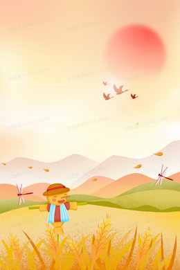 橙黄卡通合成稻香田野背景
