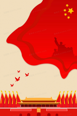 红色旗帜大气党建天安门建国70周年背景